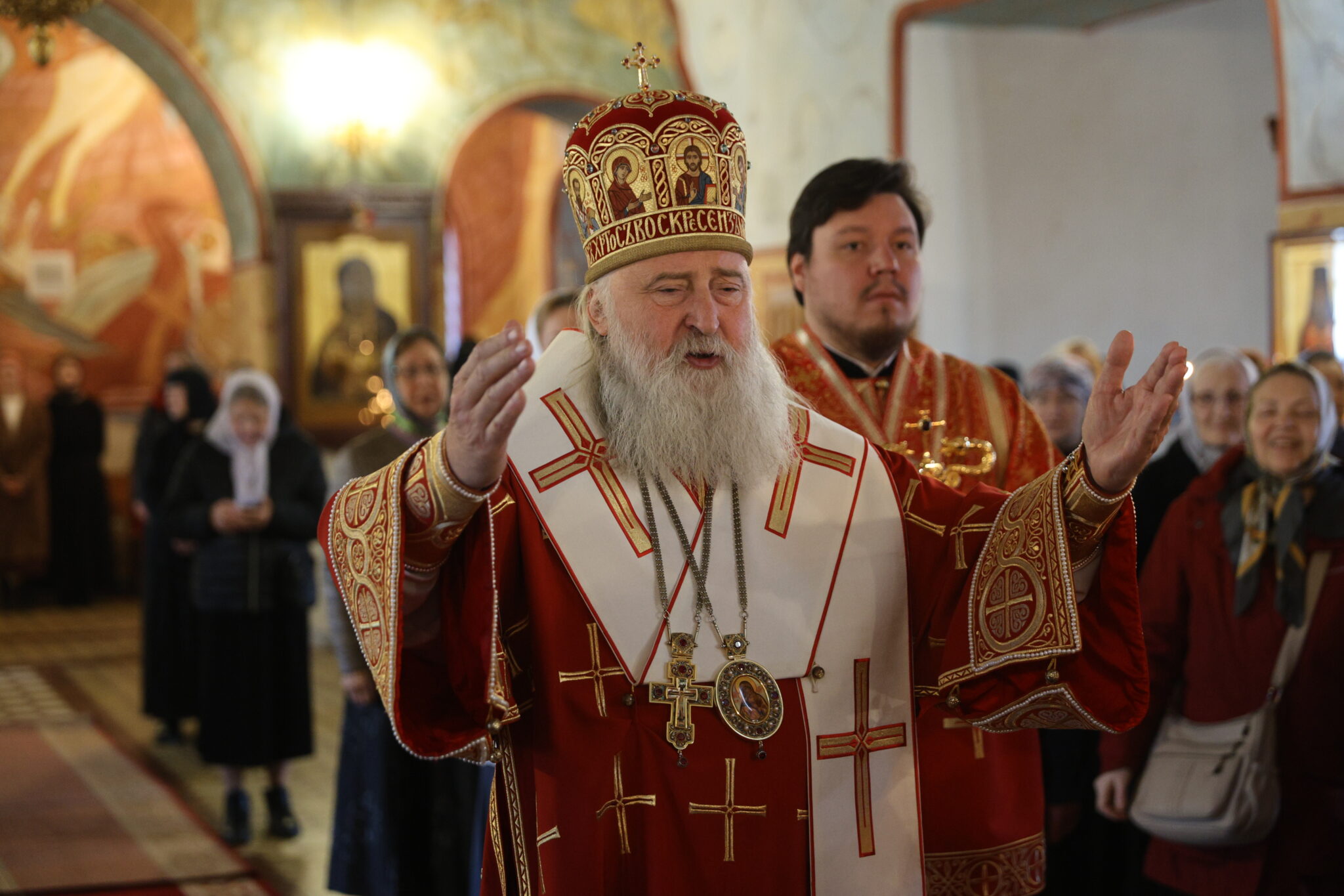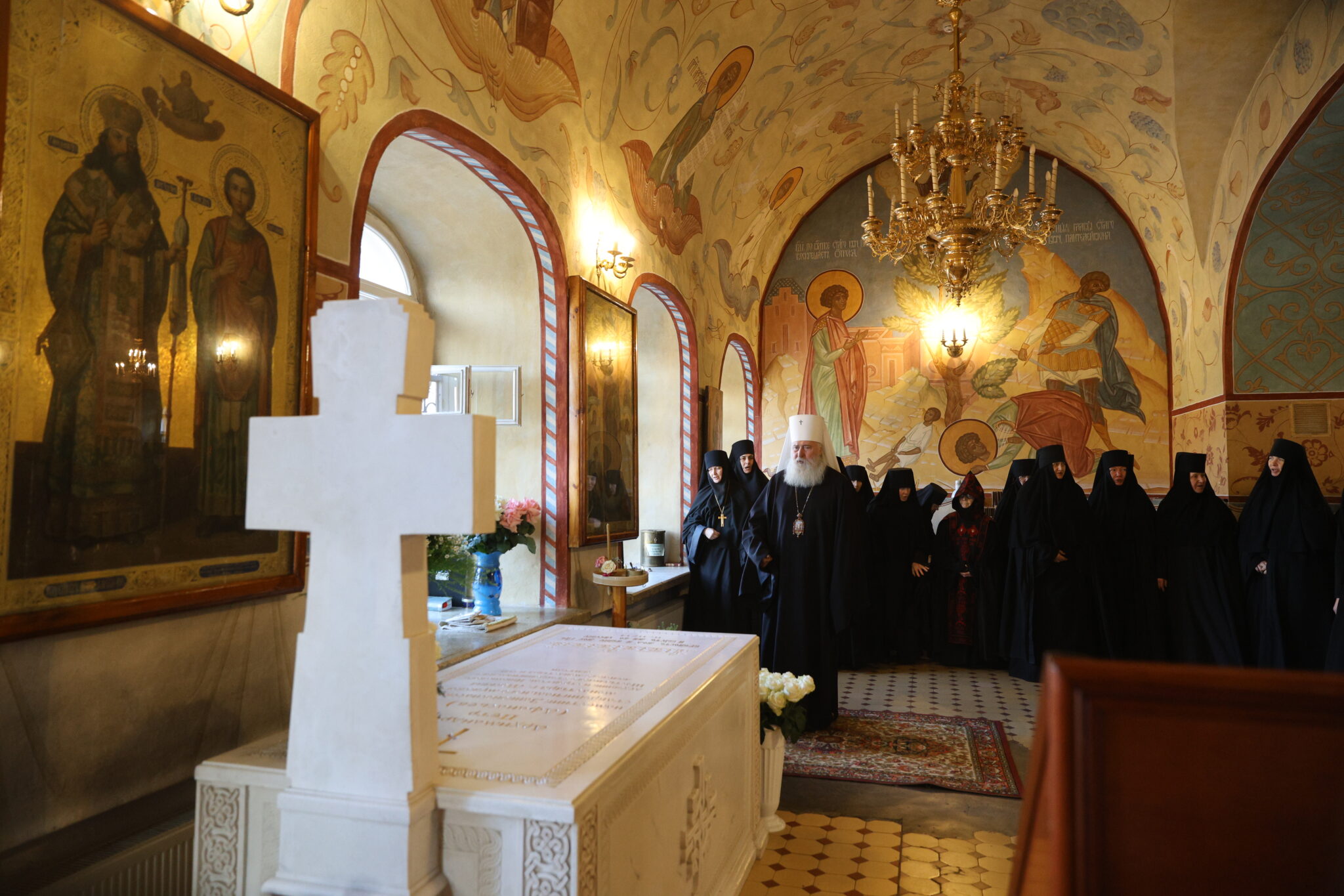 Божественную Литургию по Пасхальному чину 13 апреля возглавил Высокопреосвященнейший Владыка Феогност, митрополит Каширский, председатель Синодального отдела по монастырям и монашеству. Владыке сослужил иеромонах Даниил (Константинов), наместник Заиконоспасского ставропигиального мужского монастыря, с клириками этой обители. Встреча Владыки была в 7.30. В завершении Божественной Литургии был совершен Пасхальный крестный ход. За богослужением с игуменией Антонией и сестрами молились игумения Неонилла, настоятельница Никольского Шостьенского ставропигиального женского монастыря с сестрами, а также множество духовных чад приснопамятного отца Петра..